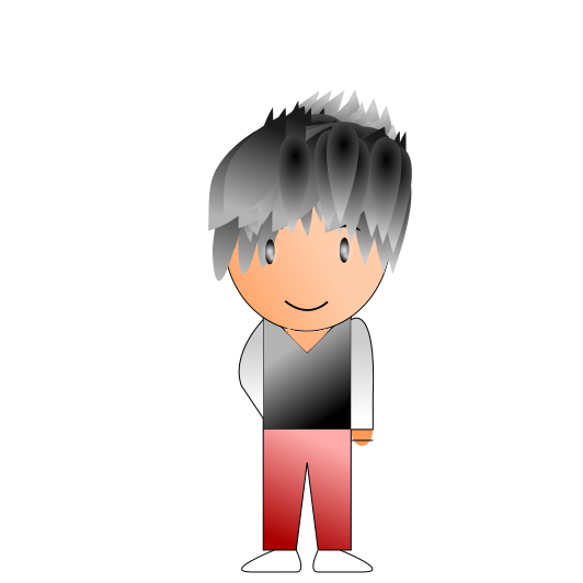 This features a cartoon character with short hair, wearing a red shirt and pants. The character is standing in front of a white background, giving the impression that it's a flat design or a 2D illustration. The character appears to be smiling, adding a friendly touch to its appearance. This image could potentially be used for various purposes such as advertising, social media posts, or even as part of an educational material.