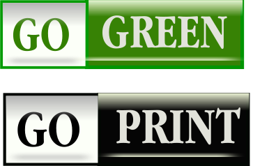 This features two different colored green and black signs that say "Go Green" and "Go Print." These signs are placed on top of each other, with the green sign above the black one. The signs convey a message about environmental awareness and promoting sustainable practices in printing documents.
