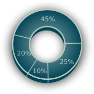 This features a circular graphic with a pie chart that displays the percentage of twenty-five. The chart is divided into segments, each representing a different portion of the whole. The largest segment takes up about 45% of the chart, while the remaining segments are smaller and distributed around the circumference of the circle. This visual representation helps to convey information in an easily understandable manner, making it suitable for various applications such as data analysis or presentations.
