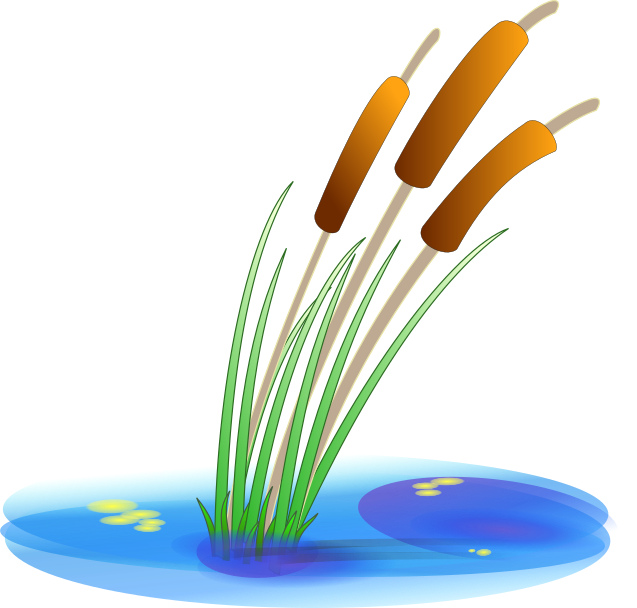This features a swamp with three reed plants growing out of it. These plants are brown in color and appear to be waving in the water, creating an interesting visual effect. The swamp itself is blue in color, providing a contrasting backdrop for the reeds. Overall, this scene captures the beauty of nature and the unique characteristics of the swamp environment.