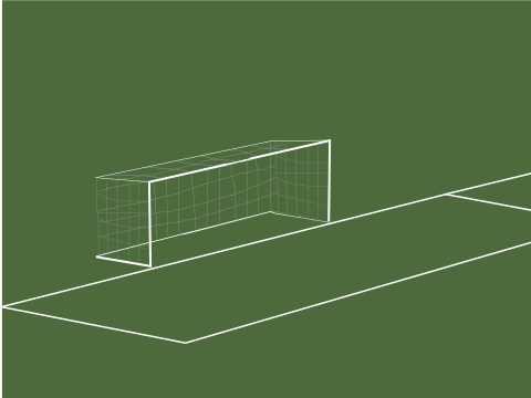 This features a soccer field with an empty goal and net. The goal is positioned towards the left side of the field, while the net extends across the width of the field. The field appears to be green in color, giving it a lush and inviting appearance. This drawing showcases the essential elements of a soccer field, including the goal and net, which are crucial components for playing the sport.