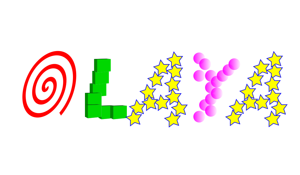 This is a creative and colorful representation of the word "LAYA" using various symbols. These symbols include stars, which are scattered throughout the scene in different sizes and positions. There are also several instances of the letter "L" made from blocks or other shapes, adding to the visual interest of the composition. The overall effect is a playful and engaging display that showcases the word "LAYA" in an unconventional yet visually appealing manner.