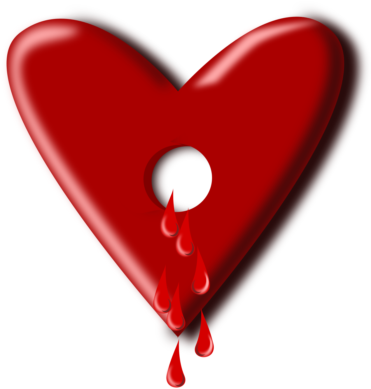 This features a red heart with blood dripping from it. There are three drops of blood visible on the heart, each one falling in different directions. The heart is positioned towards the left side of the image and appears to be slightly tilted. This unique design creates an interesting visual effect that captures attention and evokes a sense of emotion or drama.
