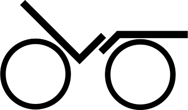 This features a black and white drawing of a bicycle. The bike is depicted in a silhouette style, with the main focus on its wheels. There are two prominent sets of wheels, one located towards the left side of the image and another towards the right side. Additionally, there is a smaller set of wheels at the bottom-left corner of the drawing. The overall composition of the image gives an impression of a minimalist representation of a bicycle.