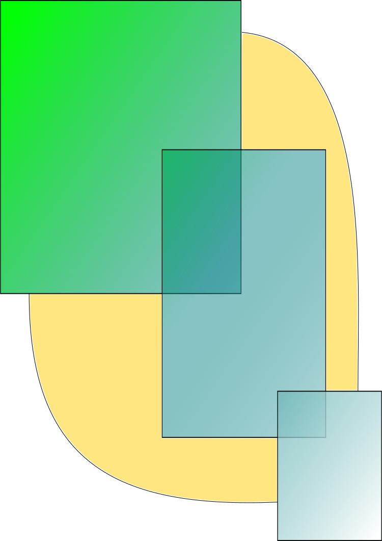 This features a square with a yellow background, which is surrounded by four smaller squares. Each of the smaller squares has a different color and design, creating an interesting visual effect. The colors include blue, green, and white, adding variety to the overall composition. The arrangement of these squares creates a sense of depth and complexity in the image, making it visually engaging for viewers.