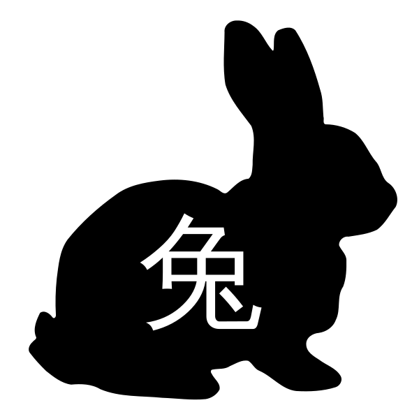 Tags: rabbit, bunny, black and white, chinese symbol, silhouette rabbit
