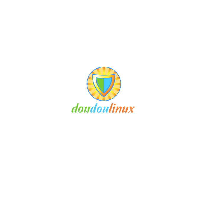 This features a logo for DouDou Linux, which is an operating system. The logo has a shield shape with a yellow background and green accents. It also includes the word "Linux" written in red on top of the shield. This unique design showcases the brand's identity while making it easily recognizable to users.