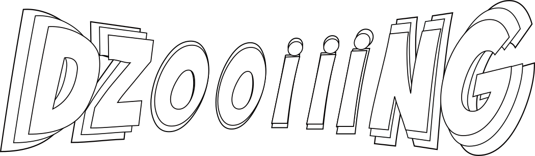 This is a large, white sign with the word "Dzooiiing" written in black letters. The letters are outlined and appear to be hand drawn or stylized, giving it an artistic appearance. The sign seems to be promoting something related to the word "dzooiiing," but without more context, it is difficult to determine exactly what that might be.