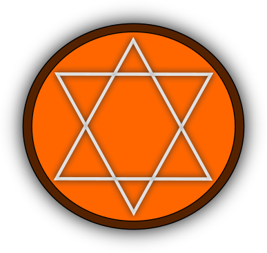 This features a round, orange-colored symbol with a six-pointed star in the center. This symbol is likely an emblem or logo representing Jewish culture and faith. The star has a golden hue, giving it a warm and inviting appearance. The overall design of the symbol appears to be intricate and detailed, making it visually appealing.