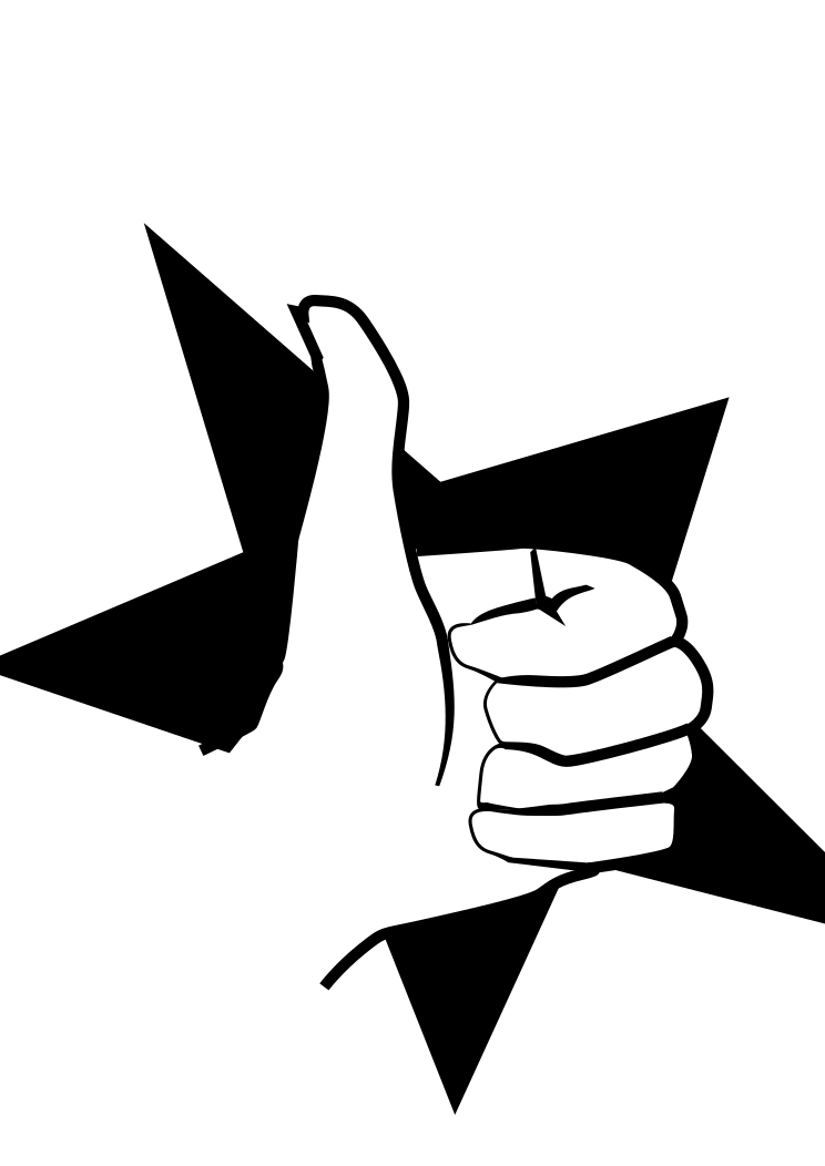 This features a thumb pointing upwards, with the star logo prominently displayed. This symbol is often associated with hitchhiking and represents a positive gesture of approval or encouragement. The thumb's position in relation to the star suggests that it is giving its seal of approval or endorsement for the logo. Overall, the image conveys a sense of positivity and adventure, as represented by the hitchhiking symbol.