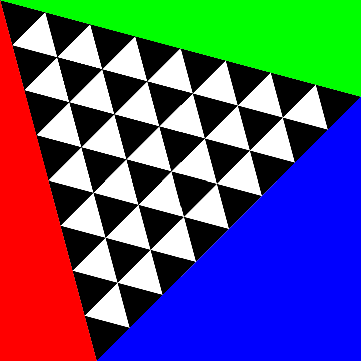 This features a colorful and intricate design made up of various triangles. These triangles are arranged in different colors, including red, green, blue, yellow, and black. The triangles are placed together to create an eye-catching pattern that fills the entire frame. The combination of these vibrant colors and unique geometric shapes gives the image a lively and dynamic appearance.