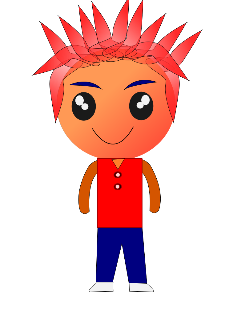 This features a cartoon character with red hair and an orange shirt. This character is standing in front of a white background, making it the main focus of the scene. The character appears to be smiling, giving off a friendly vibe. The design of this character seems to resemble a young man or boy, adding a playful element to the image.