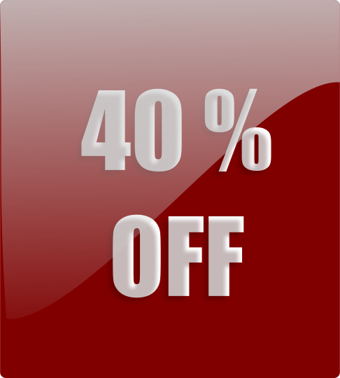 This features a red background with white text that reads "40% off." This discount offer is likely to attract customers and encourage them to make purchases. The bold use of the color combination makes it easy for people to notice the deal, which can be particularly effective in promotional materials or advertisements.