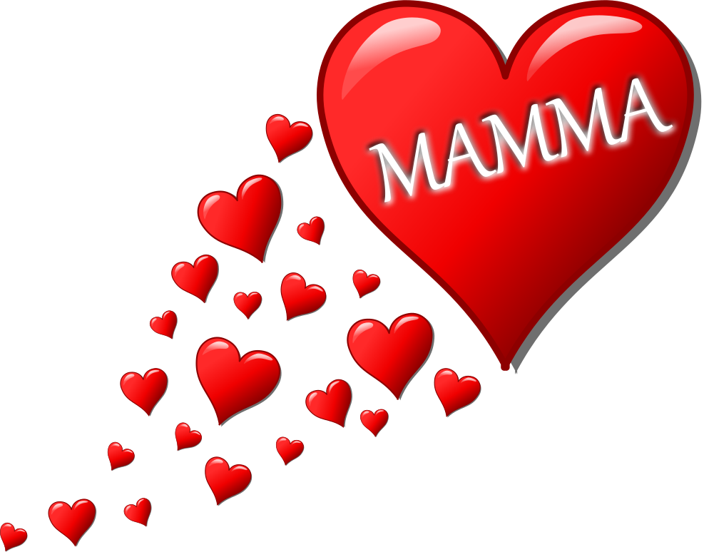 This features a heart with the word "Mamma" written on it, surrounded by numerous small hearts. These hearts are scattered throughout the scene in various positions and sizes, creating an overall warm and loving atmosphere. The main heart is large and takes up most of the space, while the smaller hearts add depth and detail to the image. This design could be used for a Mother's Day card or as a decoration to celebrate the special occasion.