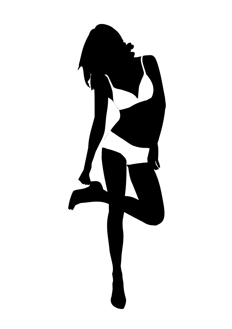 This features a woman in a black and white photo, wearing a bikini. She is posing with her hands on her hips, showcasing her figure. Her outfit consists of a bra and shorts, which are both visible in the picture. The woman's pose and attire suggest that she might be at a beach or poolside location, enjoying a sunny day.