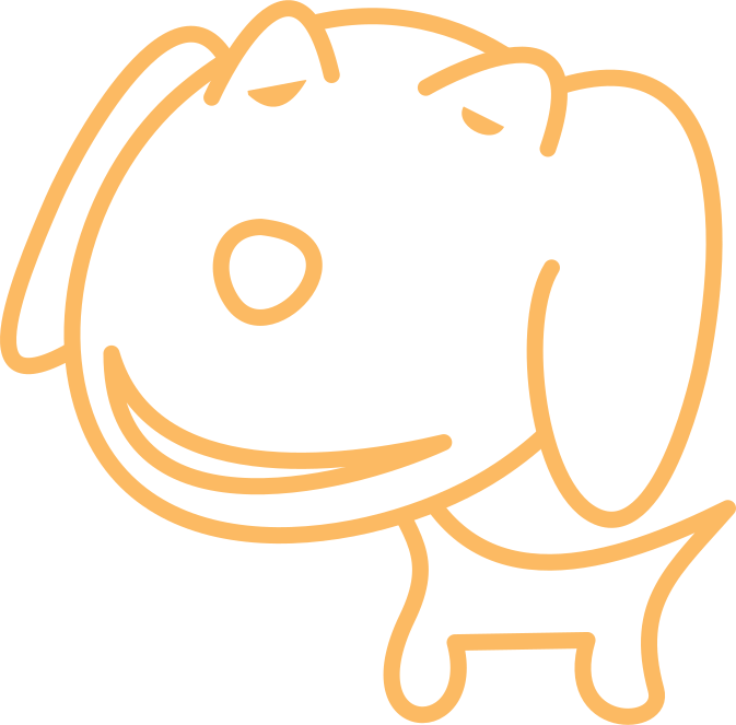This features a yellow outline of a dog with a large head. It appears to be smiling, giving the impression that it is happy or playful. The dog's face is prominently displayed in the foreground, while its body extends into the background. The overall color scheme of the drawing is predominantly yellow, which adds a sense of warmth and friendliness to the image.