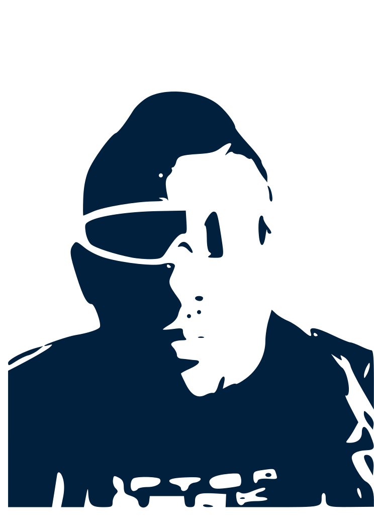 This features a black and white silhouette of a man wearing sunglasses. He appears to be looking down, possibly contemplating something or just observing his surroundings. The man's head is turned slightly to the left, giving him an introspective demeanor. The overall effect of the image is one of mystery and intrigue, as it captures a moment in time without revealing any specific details about the subject.