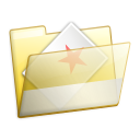 This features a yellow folder with an envelope inside. The envelope is open, revealing the contents of the folder. Inside the envelope, there are several papers and a star-shaped sticker on one of them. The folder appears to be made of plastic, giving it a transparent appearance.