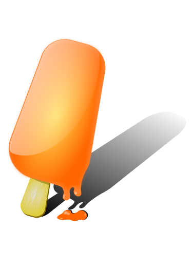 This features a close-up of an orange ice cream cone, which appears to be melting. It is placed on top of a stick and casts a shadow in the background. The scene gives off a sense of warmth and indulgence as the ice cream slowly drips down the stick. This could be a representation of a hot summer day or simply an artistic portrayal of a delicious treat.