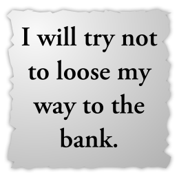 This is a piece of paper with text written on it. The text reads, "I will try not to loose my way to the bank." The paper appears to be torn or cut in half, giving it an old and worn appearance.