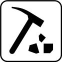 This features a square sign with an icon of a hammer and pickaxe. This symbol is likely used to represent the mining industry or related activities. In addition to the main symbol, there are several small black squares scattered around it, possibly representing rocks or other mining-related objects. Overall, the image conveys a sense of strength and determination associated with the mining process.