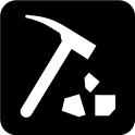 This features a black square with an icon of a hammer and pickaxe. This symbol is likely used to represent tools or equipment, possibly related to construction or mining. The hammer and pickaxe are the main focus of the image, with no other objects visible in the scene.