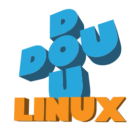 This features a blue and orange logo for Doudou Linux. It is an eye-catching design that stands out on the page. The letters are arranged in a visually appealing manner, with each letter taking up a different section of the image. This unique combination of colors and arrangement makes it an attractive representation of the brand.