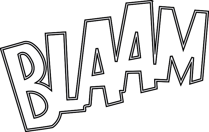 This is a black and white comic book style drawing of an explosion. It features the word "BLAM!" written in bold letters, with the letter "A" being particularly large and prominent. The drawing captures the essence of an explosive event, likely from a comic or cartoon. The artwork is reminiscent of older clipart designs, giving it a nostalgic feel.