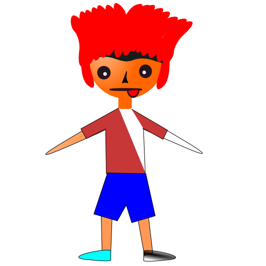 This features a cartoon character with red hair and an orange shirt. This character is standing in front of a white background, giving the impression that it's a flat design or a drawing. The character appears to be posing for a picture, possibly as part of a comic strip or other visual content. The character's facial expression suggests that they might be making a funny face or reacting to something in their environment.