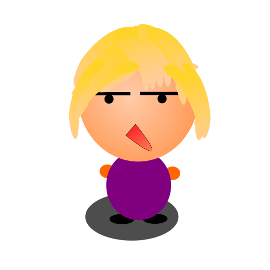 This features a cartoon character with blonde hair and a purple shirt. The character has an exaggerated facial expression, making it appear as if they are frowning or having a funny face. The character is standing in the center of the frame, taking up most of the space. The overall style of the image gives off a playful and lighthearted vibe.