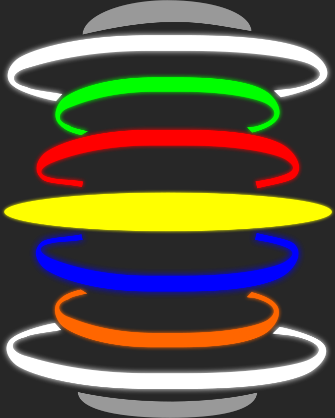 This features a colorful spiral made up of multiple circles. Each circle is colored differently, with the colors being blue, yellow, red, green, and orange. These circles are arranged in a circular pattern, creating an eye-catching display. The spiral appears to be floating or hovering above a surface, giving it a unique and dynamic appearance.