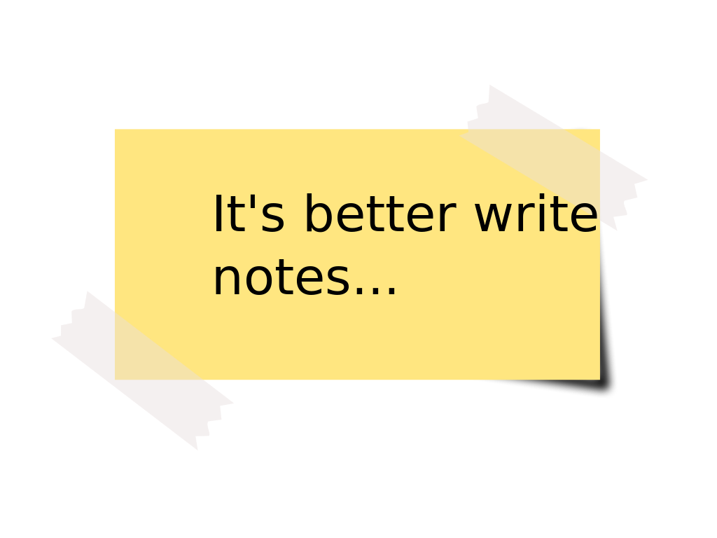 This features a yellow sticky note with black text that reads, "It's better to write notes...". The note is placed on a white background, which creates a contrast between the two colors. This simple message suggests that writing notes can be more effective than other forms of communication or reminders.
