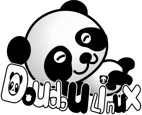 This features a panda bear with a smile on its face, sitting in front of the word "Doudou Linux." This cute and playful design is likely meant to attract attention and promote the use of this operating system. The panda's eyes are closed, giving it an innocent appearance, while the word "Linux" appears below it, emphasizing its connection to the open-source operating system.