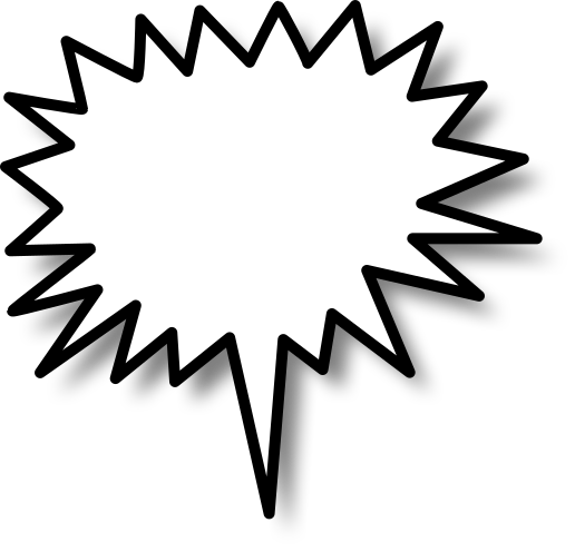This features a large, black and white star-shaped speech bubble. It is placed on a pink background, creating an interesting contrast between the two colors. The star has a slightly rounded shape, giving it a more dynamic appearance. This unique design makes for an eye-catching and creative visual element that can be used in various contexts such as artwork or graphic design projects.