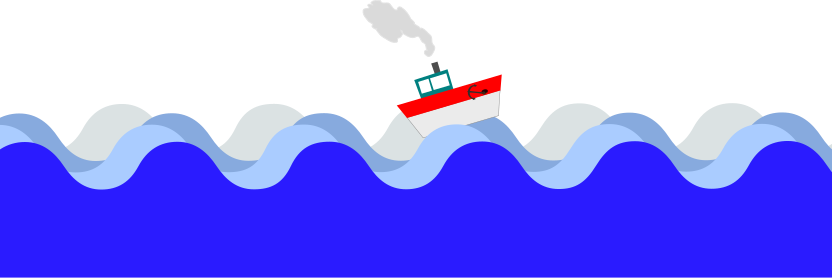 This features a small boat sailing on top of the ocean waves. It appears to be a cartoon or comic-like illustration, with the boat being depicted as a red and white ship. The boat is situated in the middle of the scene, surrounded by vast blue water that stretches out towards the edges of the image. This artistic representation captures the essence of adventure and exploration on the open seas.