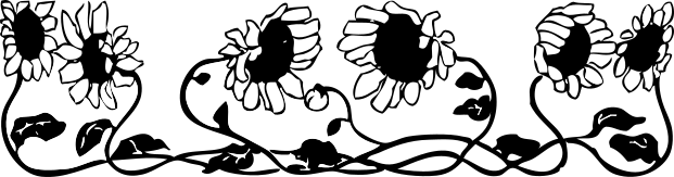 This features a design made up of six sunflowers, each with a long stem. These flowers are arranged in a row and connected by thin vines that run between them. The sunflowers are black and white in color, creating an elegant and visually appealing pattern. This design could be used as a border or decoration for various purposes such as cards, invitations, or other printed materials.