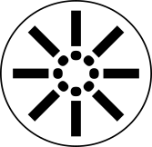 This features a black and white circular logo with a central hole. Inside the circle, there are numerous small dots arranged in various patterns, creating an intricate design. The overall appearance of the logo is simple yet visually appealing, making it suitable for use as a symbol or emblem.