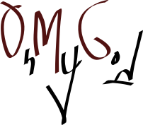This is a close-up of an artistic lettering or writing, possibly in cursive. It appears to be a handwritten or drawn text that has been carefully crafted with attention to detail. The letters are arranged in such a way that they form the word "OMG" which stands for "Oh My God." This could be a playful or artistic expression of someone's reaction to something, possibly an unexpected event or situation. The lettering is displayed prominently on the image, drawing attention to its unique and creative design.