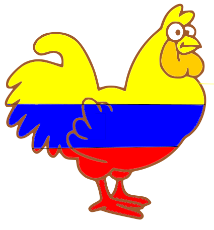 This features a cartoon rooster with a red and yellow color scheme, standing in front of the colors of the Mexican flag. The rooster is wearing glasses, giving it a quirky appearance. It appears to be posing for a picture or possibly being used as an emblem. The rooster's design is reminiscent of a chicken, but its color scheme and glasses make it unique and eye-catching.