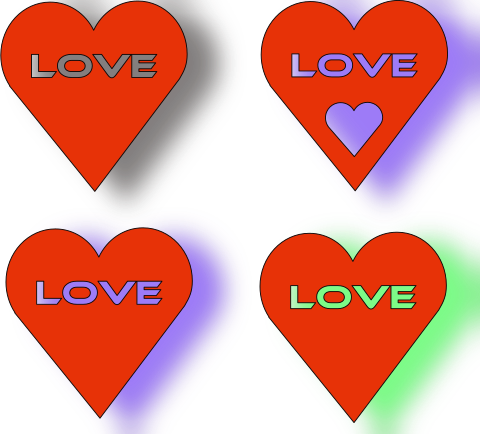 This features four hearts with the word "LOVE" written on them. Each heart is a different color, including red, purple, and blue. These hearts are arranged in a row, creating an appealing visual display. The hearts are placed against a white background, which allows each heart to stand out individually. This arrangement of hearts with the word "LOVE" creates a sense of unity and love among the hearts, making it an attractive and meaningful image.