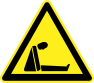 This features a yellow triangular sign with an illustration of a person lying down. This sign is likely meant to convey the message that there may be potential hazards or dangers in the area, such as suffocation or other risks associated with laying down. The sign's bright color and bold design make it easily noticeable and understandable for those who come across it.