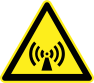 This features a yellow and black sign with an exclamation point, which is commonly known as a hazard warning sign. This particular sign has the word "wireless" written on it, indicating that there might be potential dangers related to wireless technology in the area. The sign's purpose is to alert people of possible risks and encourage them to exercise caution when approaching or using the area. It could be a warning about electromagnetic radiation, interference with electronic devices, or other wireless-related hazards.