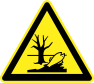 This features a yellow triangle sign with an illustration of a bird sitting on top of a tree branch. This sign is likely meant to warn people about potential hazards or dangers in the area, such as pollution or contamination. The bird's presence adds a touch of nature and serves as a visual cue for those who may not be familiar with the warning symbol. Overall, the sign communicates caution and awareness to those passing by.