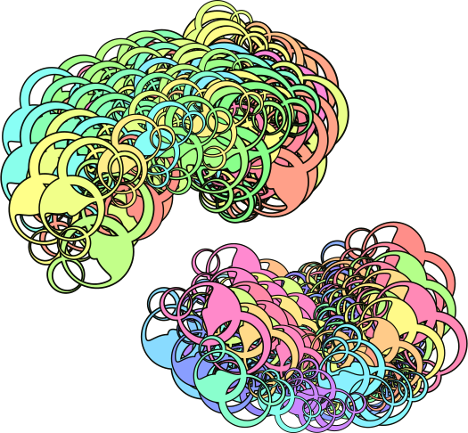 This features a large collection of colorful rings, each with unique shapes and designs. These rings are arranged in various positions throughout the scene, creating an eye-catching display. Some of the rings are placed close together, while others are spread out across the background. The vibrant colors and intricate patterns make this image visually appealing and interesting to observe.