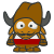 This features a cartoon character wearing a cowboy hat and a red, white, and blue striped shirt. The character appears to be smiling or making a funny face, giving it a playful and friendly appearance. The hat is positioned on the top of the character's head, adding an element of whimsy to its design. Overall, this cartoon character exudes a sense of joy and amusement, likely appealing to children and fans of animated characters.