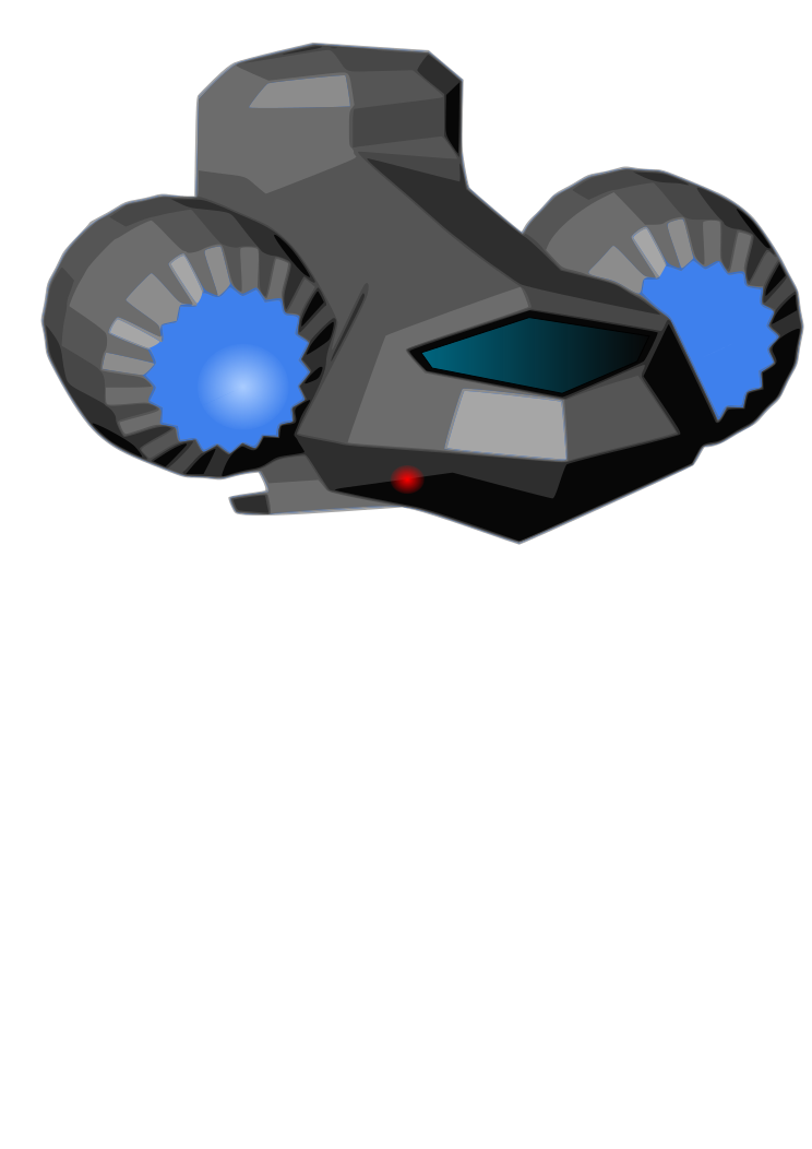 This features a futuristic spacecraft with two blue lights on the front. These lights are positioned in such a way that they appear to be eyes, giving the spacecraft an interesting and unique appearance. The craft is designed with a sleek and modern look, making it seem like something out of a science fiction movie or video game. The overall design of the spacecraft gives off a sense of advanced technology and exploration, hinting at its potential use in intergalactic travel or other cosmic endeavors.