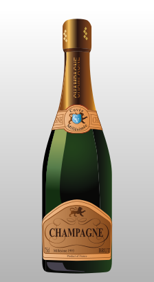This features a bottle of champagne with a gold label on it. The bottle is green and has the word "champagne" written on its label. It appears to be an illustration, as opposed to a real-life photograph. The background is light gray, which provides a clean and simple backdrop for the bottle.