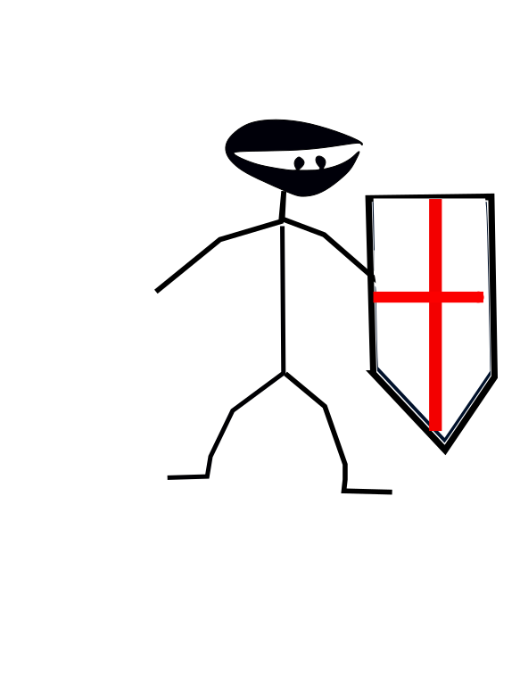 This features a cartoon drawing of a man holding an English flag. He is dressed in black and appears to be the main focus of the scene. The flag he holds is prominently displayed, covering most of his body from waist downwards. The overall composition of the image gives off a sense of strength and patriotism.