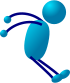 This features a blue stick man figure, which is an animated illustration of a person. This particular stick man appears to be in motion, as it is depicted running or jumping through the air. The figure's arms are outstretched, and its legs are raised off the ground, giving the impression that it is actively moving. The blue color of the stick man adds a vibrant touch to the image, making it visually appealing and engaging for viewers.