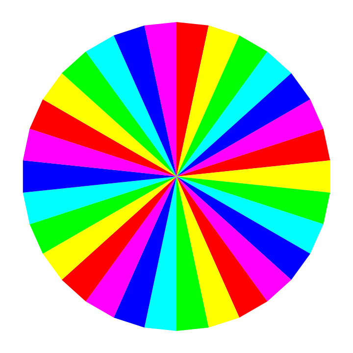 This features a large, colorful circle with a vibrant rainbow of colors. The circle is composed of six distinct sections, each displaying different shades and hues. These sections are arranged in a radial pattern, creating an eye-catching visual effect. The circle's design showcases the beauty of the rainbow spectrum, making it an appealing and captivating image.